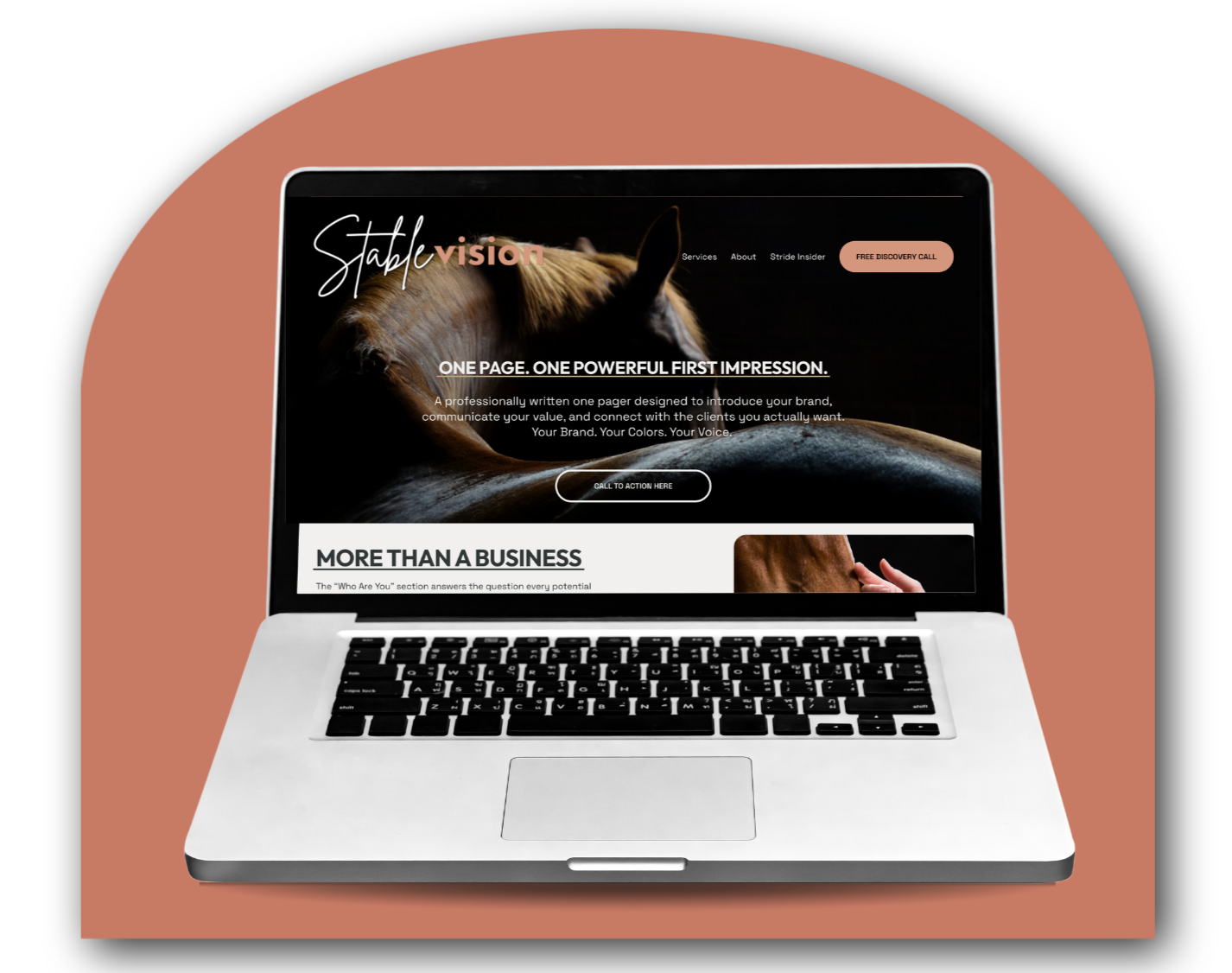 One Stride is SVA's premium one-page website service, built exclusively for equestrian professionals who are ready to show up online without the overwhelm, cost, or the wait of a full website.